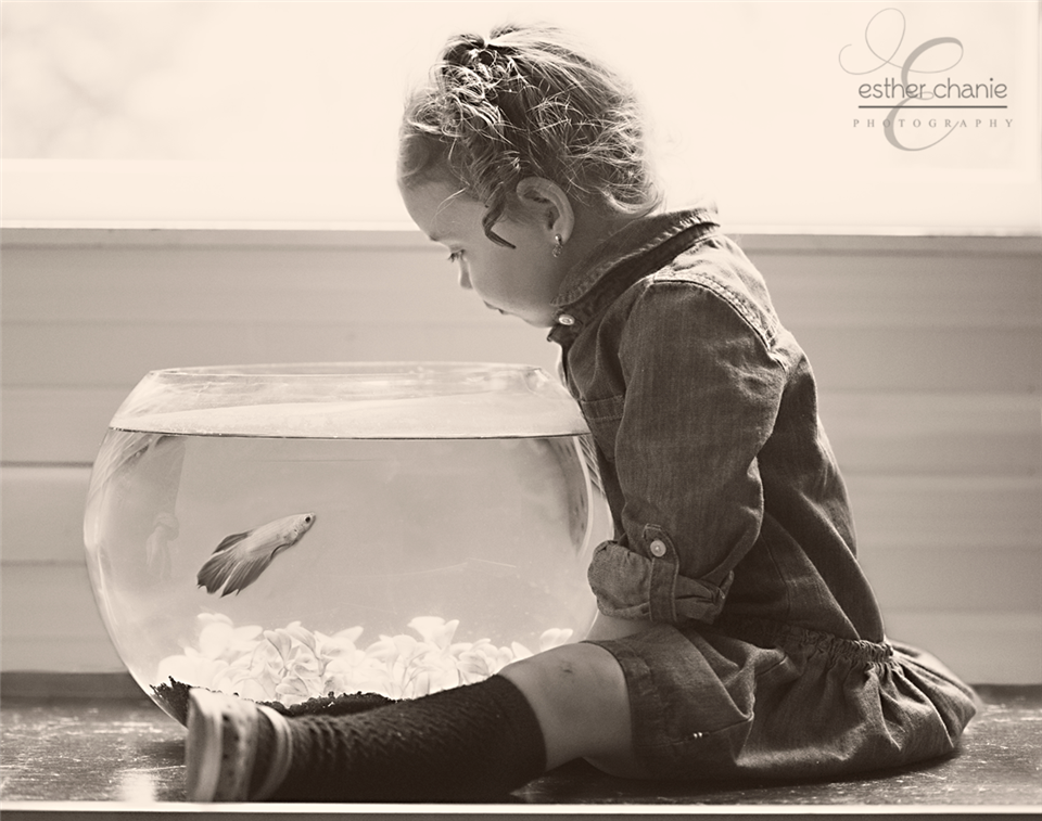 2 year old Rebecca enjoying her pet fish.