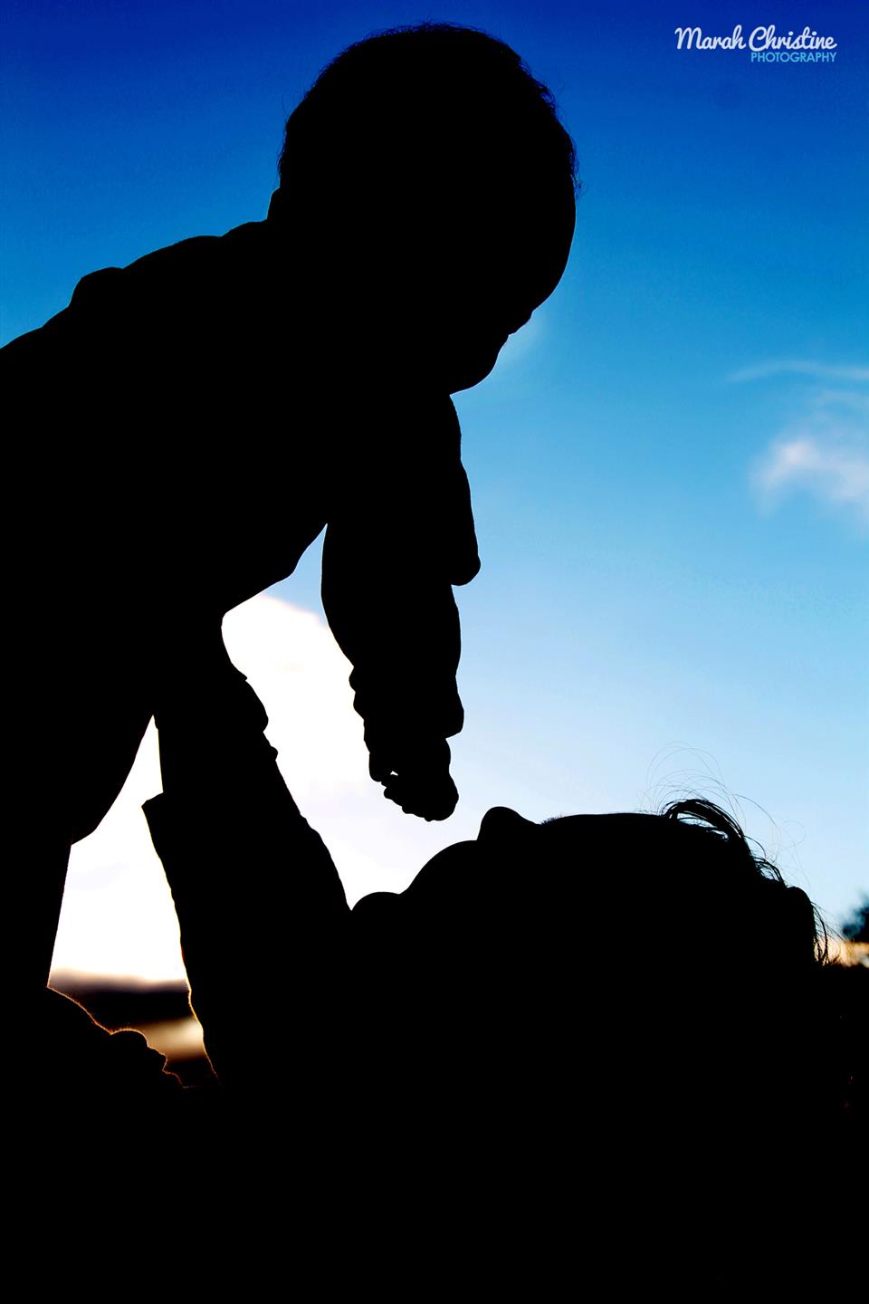 Beautiful silhouette of mom and baby in the evening sky