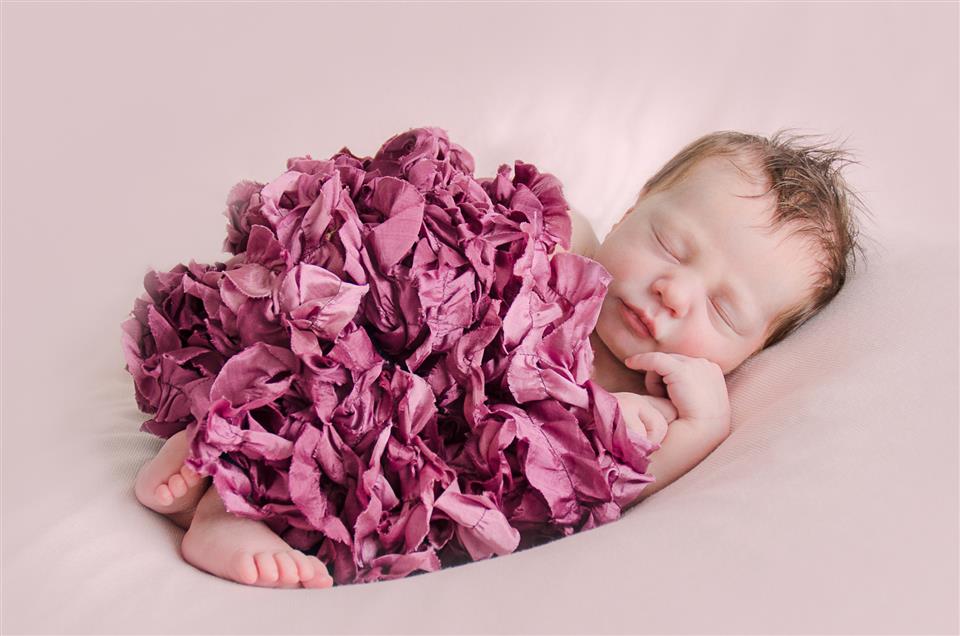 A lovely, soft image of a 10-day old baby girl in a deep slumber.