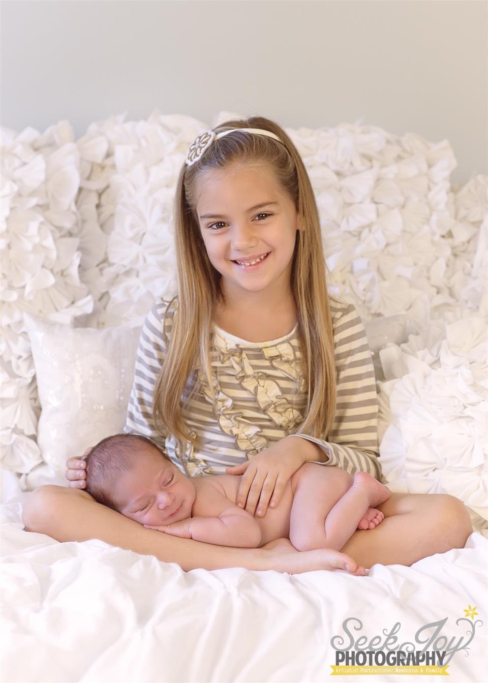 sibling shot--baby and girl both smiling