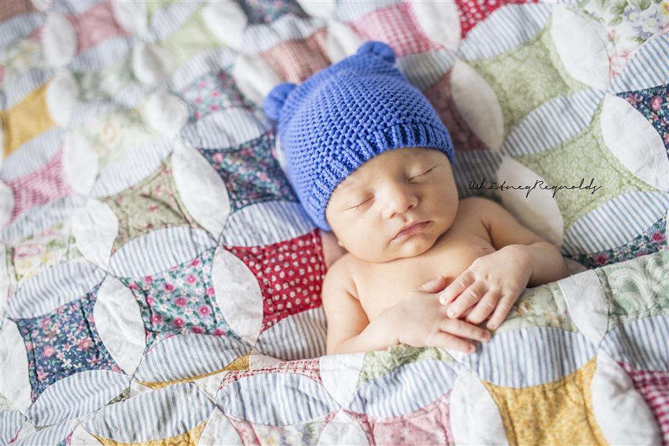 Sweet 12 day old Truett warm and snuggly on his Great Grandmother's quilt.